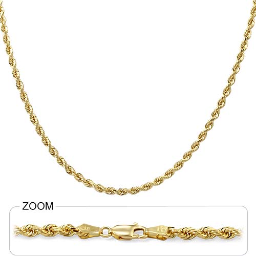 This 14k Yellow Gold Diamond Cut Rope Chain weight is 15.33gram. Length of Chain is 20" and width is 3mm [milimeter].