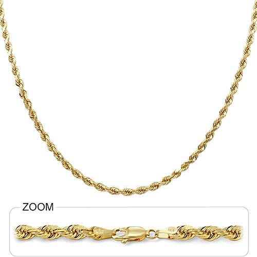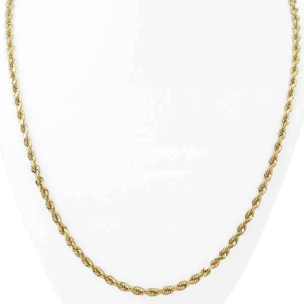 This 14k Yellow Gold Diamond Cut Rope Chain weight is 35.25gram. Length of Chain is 30" and width is 4mm [milimeter].