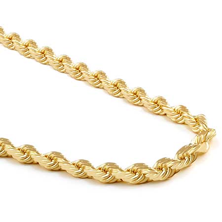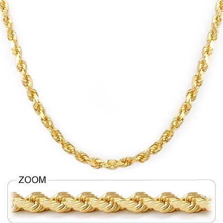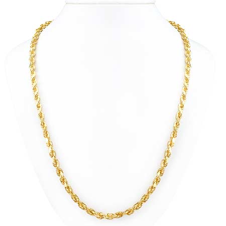 This 14k Yellow Gold Diamond Cut Rope Chain weight is 48.6gram. Length of Chain is 24" and width is 5.0mm [milimeter].