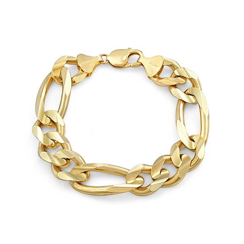 14k Yellow Gold Men Solid Figaro Bracelet (15MM,8.50",75g)