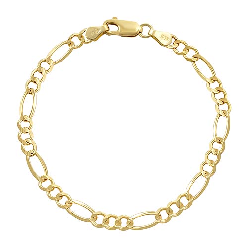 14k Yellow Gold Men Solid Figaro Bracelet (4.8mm gauge,7",4.8g)