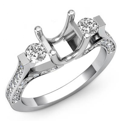 Round Diamond Three Stone Engagement Ring Prong Setting Platinum SemiMount (1Ct. tw.)