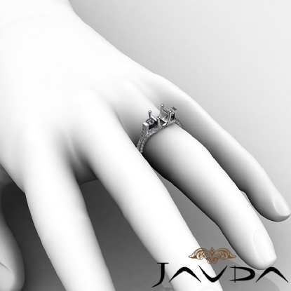 Starting to end this ring sparkles in every way. From the semi mount round center diamond, followed by two round side stones, all are in prong setting. The pave set diamond shank looks lovely in this Platinum 950 engagement ring. (1Ct. tw.)