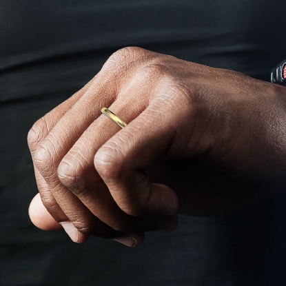This sleek 3mm wide ring for him is comfort fit & available in 14k & 18k white gold, yellow gold and rose gold & platinum 950.