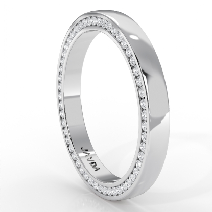 Modern yet classic this dome round diamond side eternity men's wedding band is made from 18k Gold White. Featuring polished finish dome with both side total round diamonds in a channel setting.