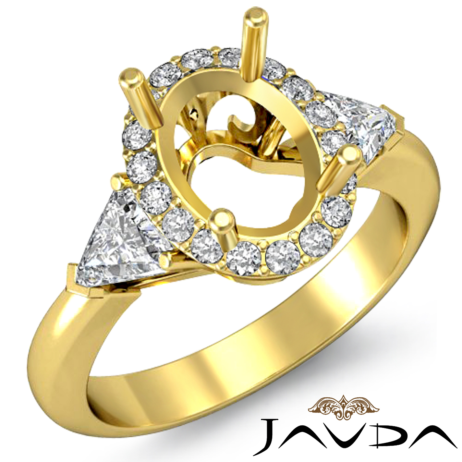 3 Stone Diamond Engagement Trillion Oval Semi Mount Ring 14k Gold Setting (1Ct. tw.)