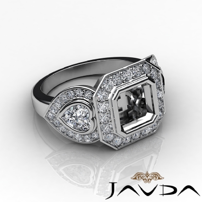 3 Stone Diamond Heart Asscher Semi Mount Ring 14k W Gold Halo 1.05Ct