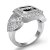 Graduated 0.55ct. round diamonds in halo, framing the semi mount asscher cut diamond and the 0.50ct. heart shaped side diamonds, this ring will capture everyone's attention. This three stone womens diamond ring is made in 14K white gold.