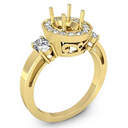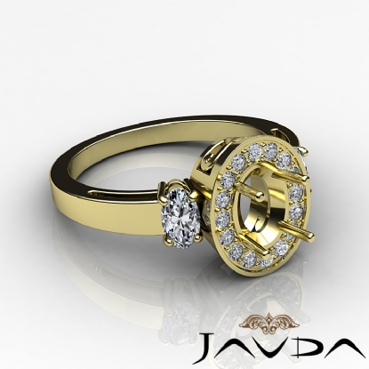 3 Stone Diamond Anniversary Round Oval Cut Setting Ring 14k Gold Semi Mount (1.05Ct. tw.)