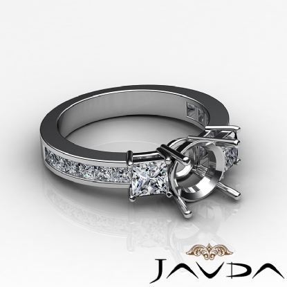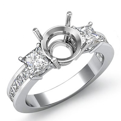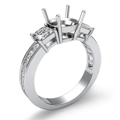 Mesmerized! The 14K white gold ring features 0.60ct. Princess diamonds on the shank in channel setting & 0.50ct. Princess diamonds in prong setting on each side of the center semi mount, making it a beautiful three stone anniversary ring.