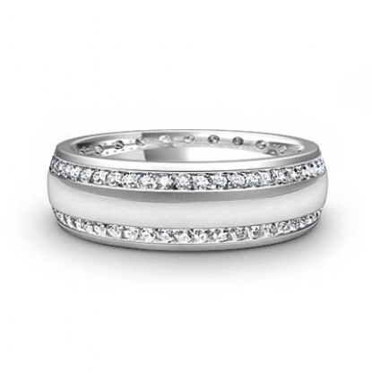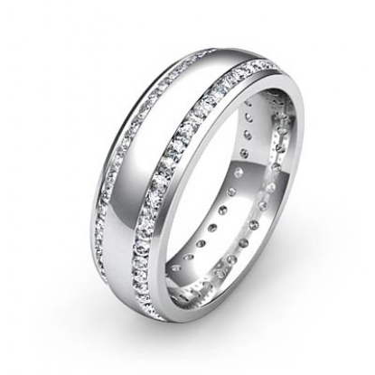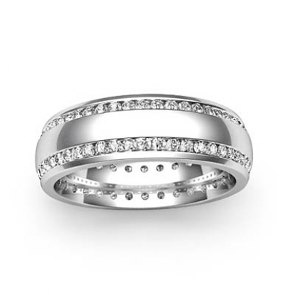 Classic and stylish dome 2 row round diamond eternity men's wedding band is made from 14k white gold. Showcasing this ring polished finished dome with two row total 1.1 carat round diamonds in a channel setting.