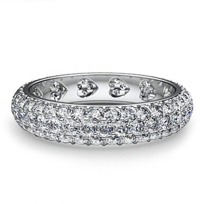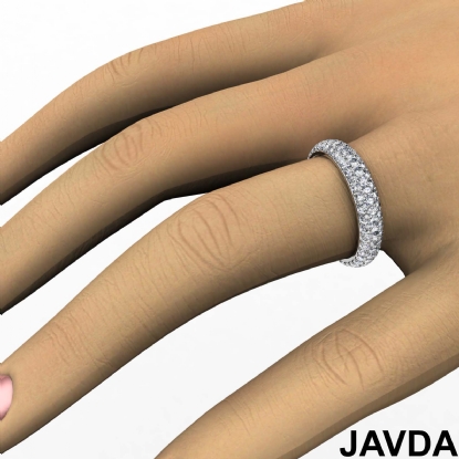 3 Row Women's Eternity Wedding Band 14k W Gold Round Diamond Pave Ring 1.5Ct