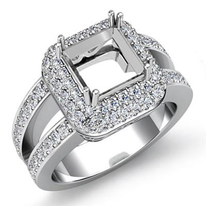 Halo Diamond Engagement Princess Semi Mount Ring Platinum (1.25Ct. tw.)