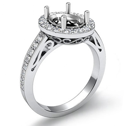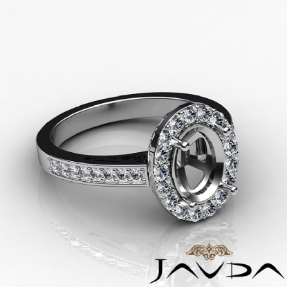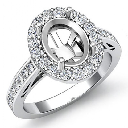 Halo Pave Diamond Engagement Oval Semi Mount Ring 18k W Gold (1.3Ct. tw.)