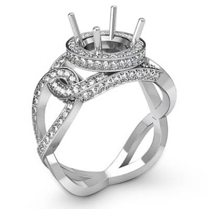 Halo Diamond Engagement Round Semi Mount Ring 18k W Gold (1.3Ct. tw.)