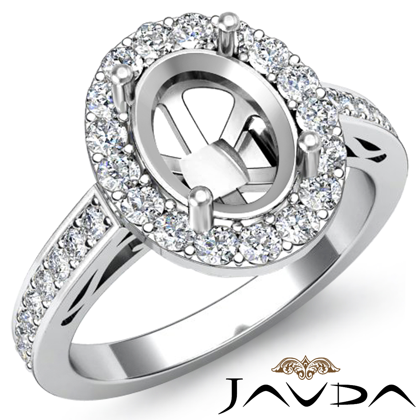 1.3Ct Halo Pave Diamond Engagement Oval Semi Mount Ring 14K White Gold