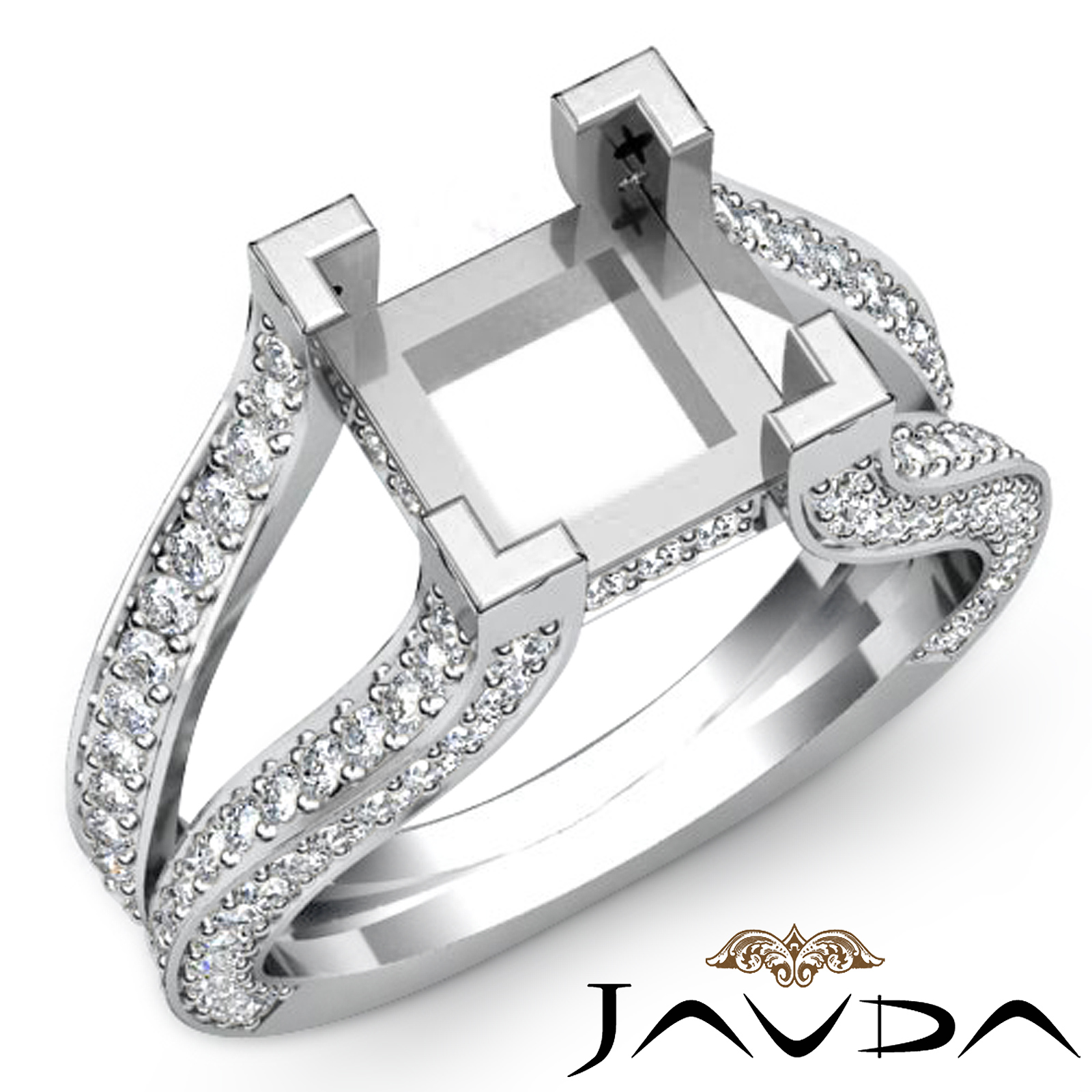 Declare your love with this fanciful 1.4ct. diamond engagement ring made in 14K white gold. It features a princess semi mount, with pave set round diamonds sparkling along the split shank.