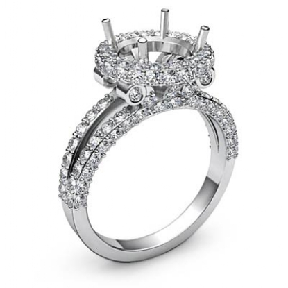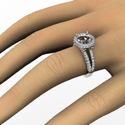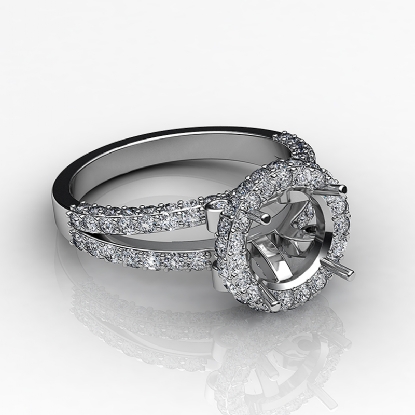 Diamond Engagement Ring Round Semi Mount 14K White Gold Halo 1.4Ctw