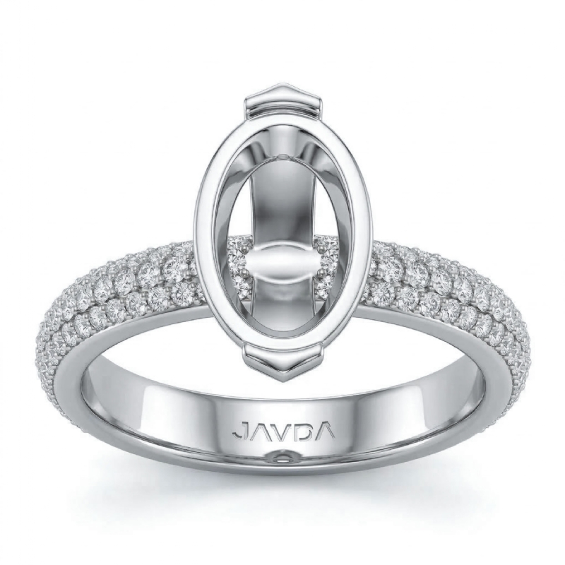 Complement your center diamond perfectly with the oval semi mount diamond engagement ring, which features 1.40ct. round diamonds in pave setting on the shank. This beautiful ring is made in enduring 14K white gold.