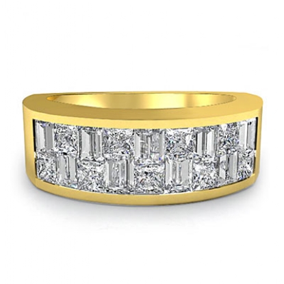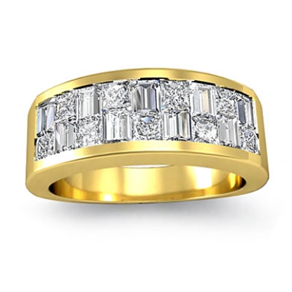 Incredibly luxurious and romantic, this princess baguette diamond men's half wedding band is made from solid 18k Gold Yellow. Featuring princess diamonds and 0.80 carat baguette set in a invisible setting.