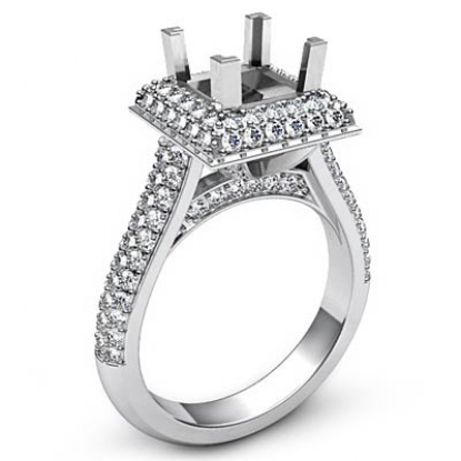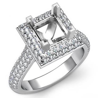 Diamond Engagement Princess Ring Platinum Halo Semi Mount (1.4Ct. tw.)
