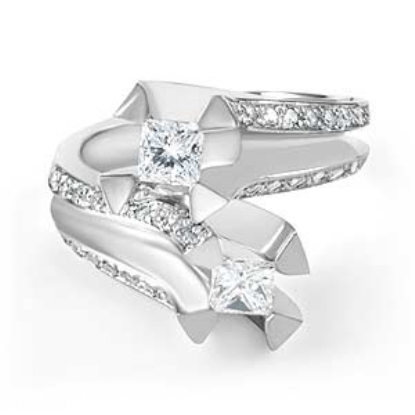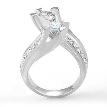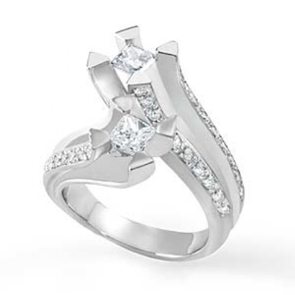 Round & Princess Diamond Engagement Ring 18k W Gold (1.4Ct. tw.)
