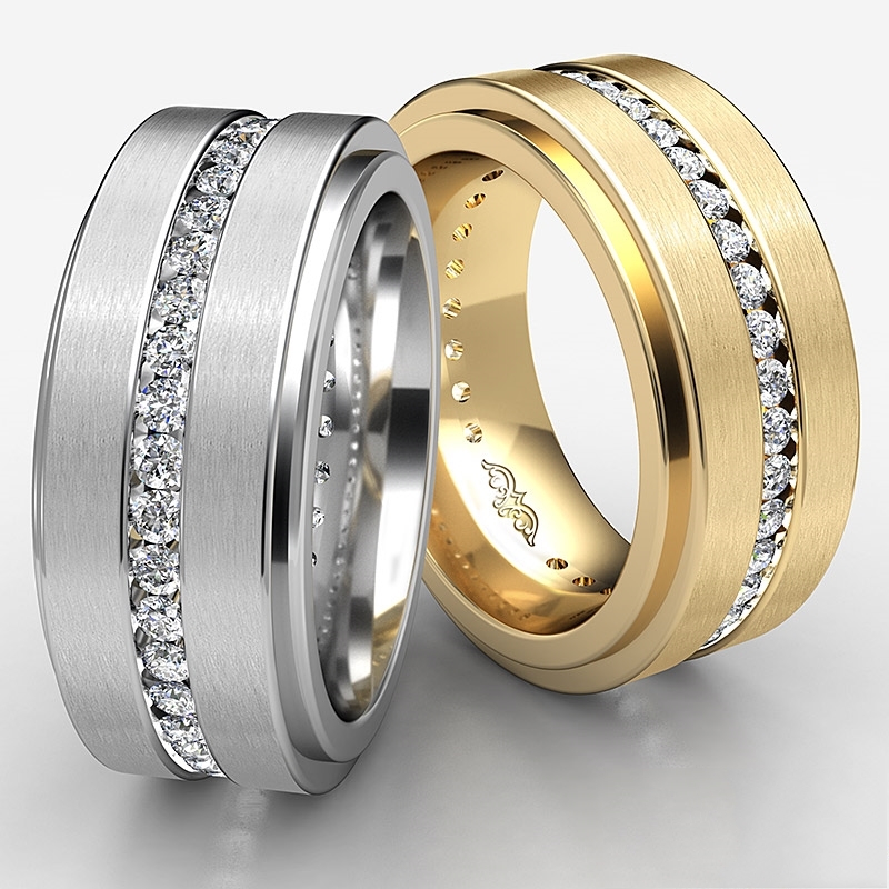 This fashionable ring for him is 9 mm wide & comfort fit and available in 14k & 18k white gold, yellow gold and rose gold & platinum 950.
