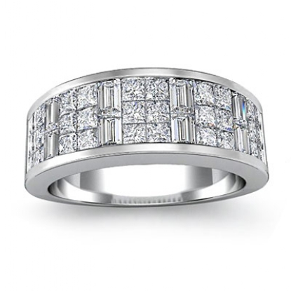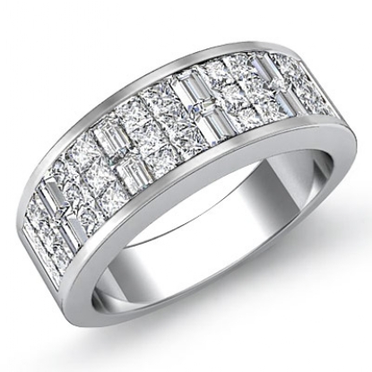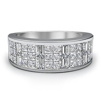 Princess Baguette Invisible Diamond Women Wedding Band 14k Gold 1.5Ctw
