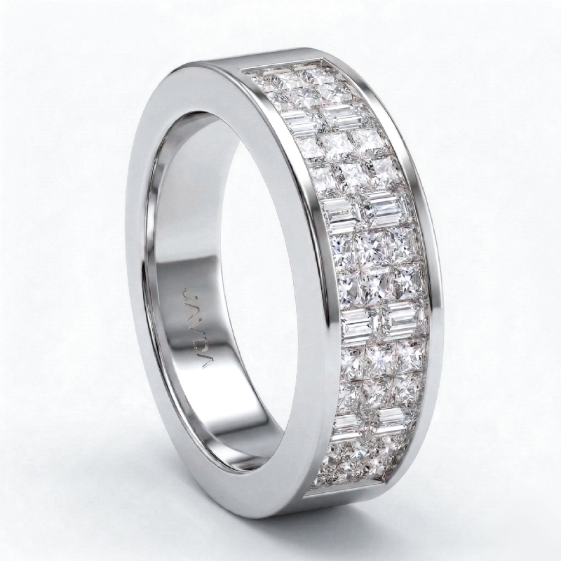 Princess Baguette Invisible Diamond Women Wedding Band Platinum (1.5Ct. tw.)