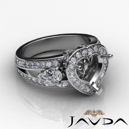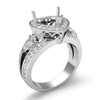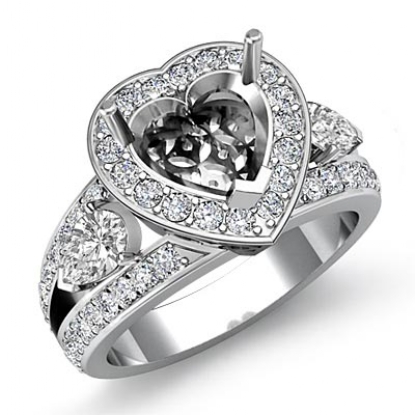 3 Stone Halo Diamond Engagement Heart Semi Mount Ring 18k W Gold (1.5Ct. tw.)