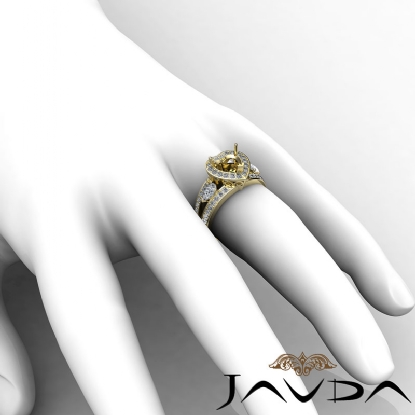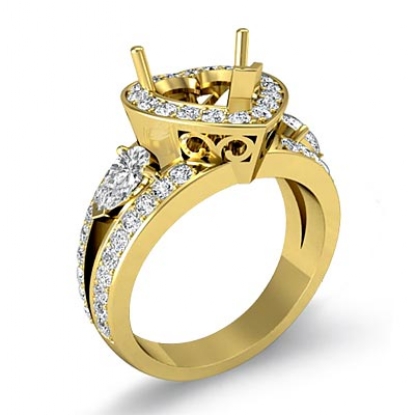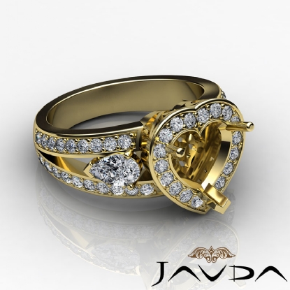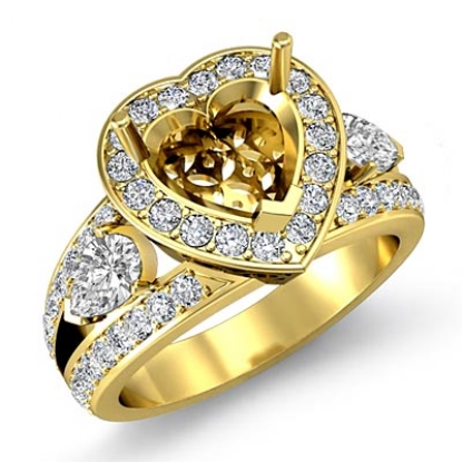 3 Stone Halo Diamond Engagement Heart Semi Mount Ring 18k Gold (1.5Ct. tw.)