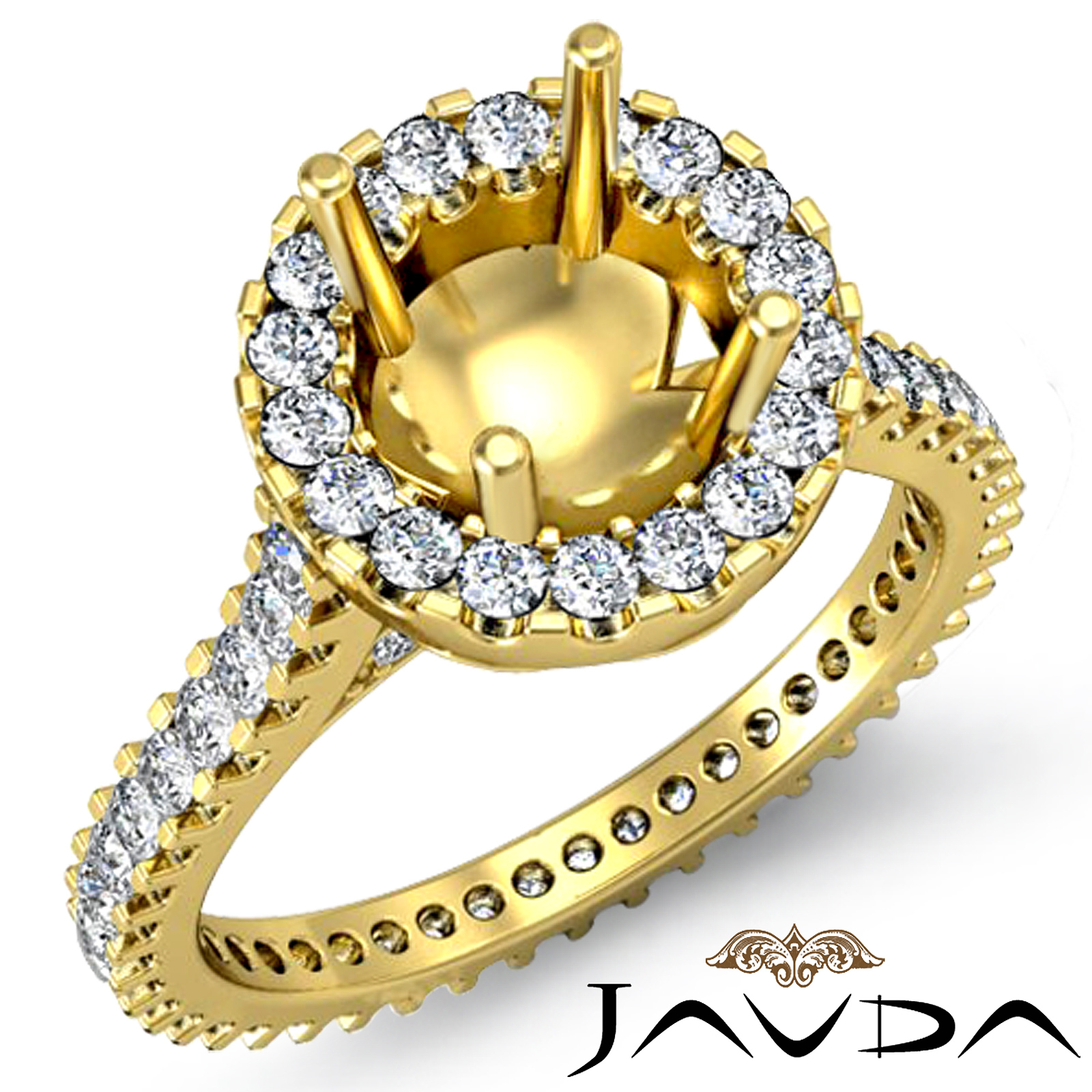 Diamond Engagement Ring 14k Gold Round Semi Mount Halo Pave Setting (1.5Ct. tw.)