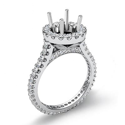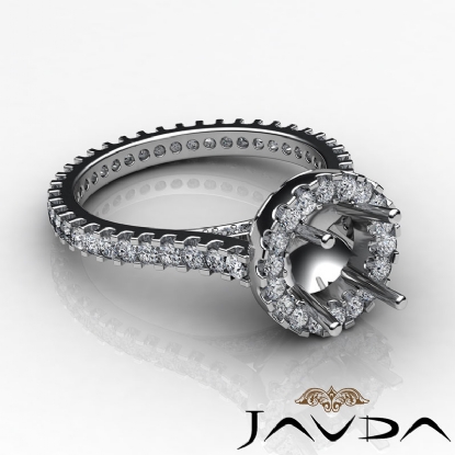 Diamond Engagement Ring 18k W Gold Round Semi Mount Halo Pave Setting (1.5Ct. tw.)