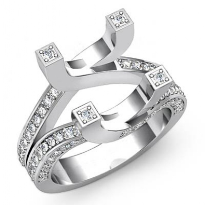 Diamond Women's Engagement Split Shank Ring 18k W Gold Semi Mount (1.5Ct. tw.)