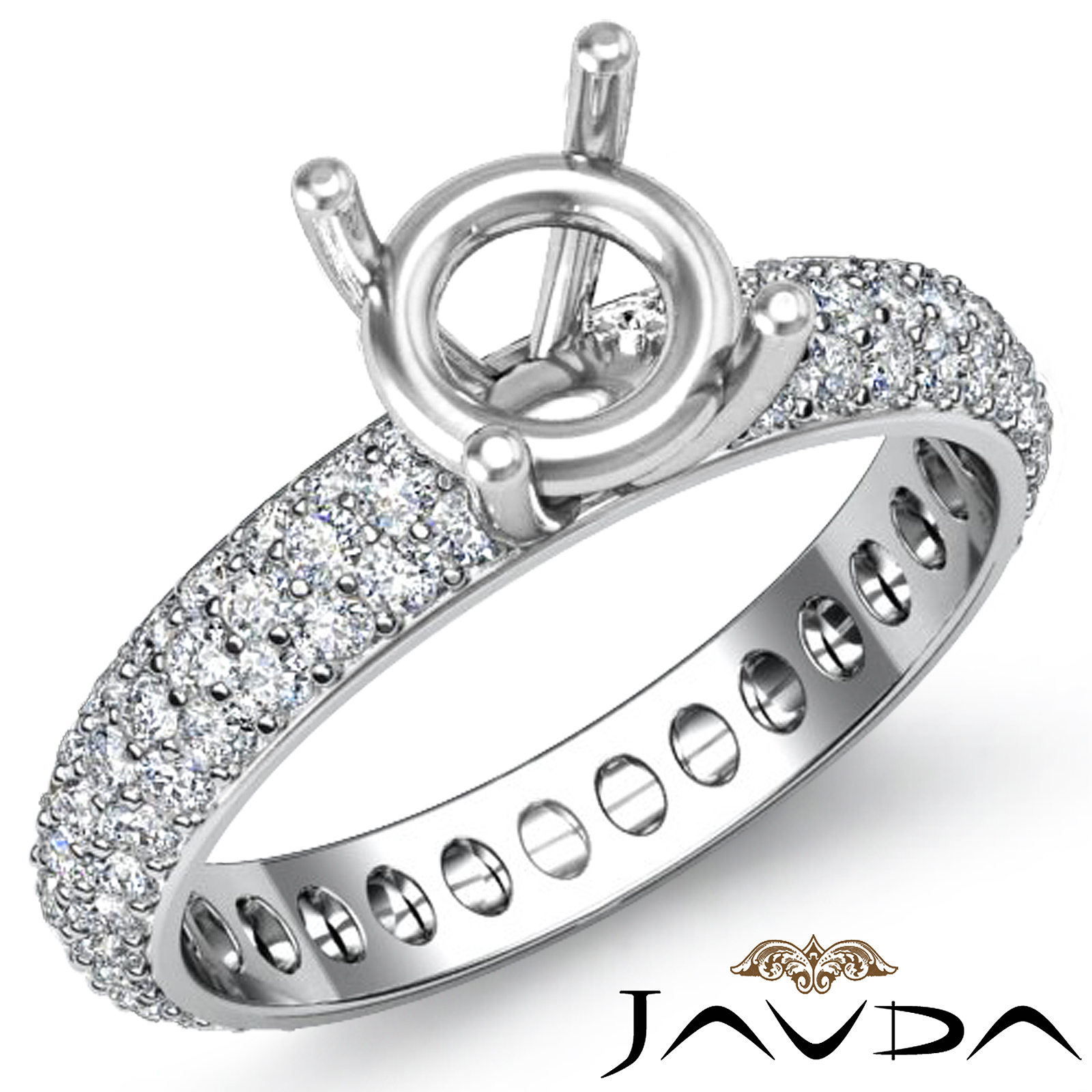 Diamond Engagement Ring Classic Round Semi Mount 18k W Gold (1.5Ct. tw.)