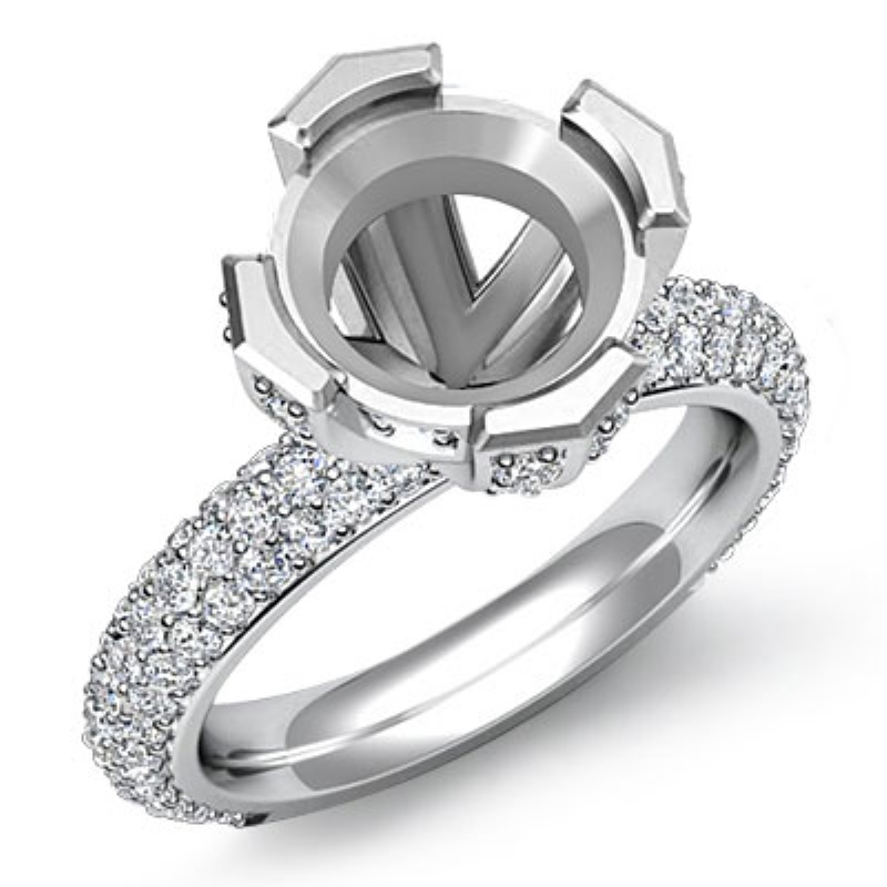 1.50 Carat Micro Pave Setting Round Diamond Women's Anniversary & Engagement Ring Setting Semi Mount made in 14k White Gold.