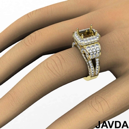 Emerald Diamond Vintage Semi Mount Engagement Ring 14k Gold Halo (2.7Ct. tw.)
