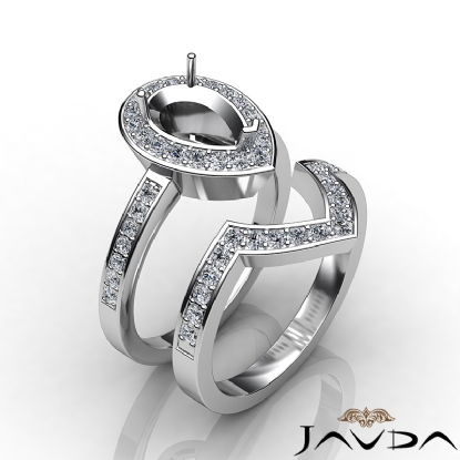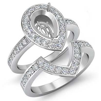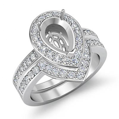 1.4 Ctw Diamond Halo Ring Pear Bridal Sets 14k White Gold Semi Mount