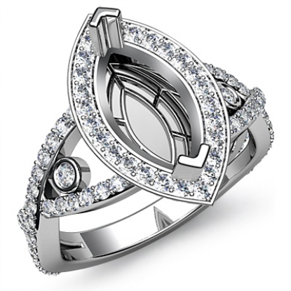 1.75 Ctw Diamond Engagement Ring Marquise Semi Mount Halo 14k W Gold