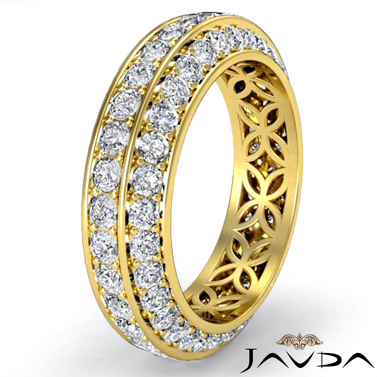Trio Pave Round Diamond Wedding Womens Eternity Band 18k Gold (1.75Ct. tw.)