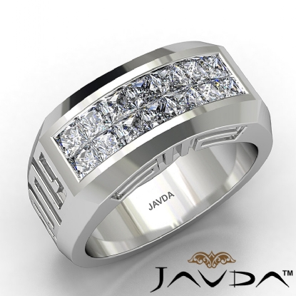 1.85 Carat Princess Cut Men Diamond Ring Engraved desginer Fashion Band made in 14k White Gold.