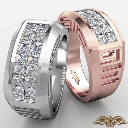1.85 Ct Princess Cut Men Diamond Ring Fashion Band W Gold