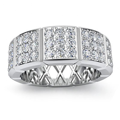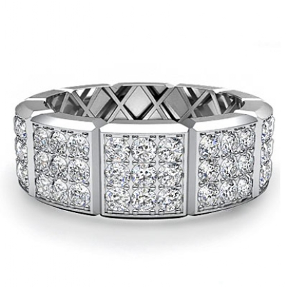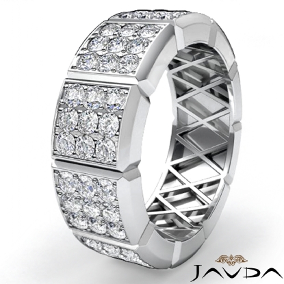 Fashionable 3 row diamond vertical cuts men's eternity wedding band is made from 18k Gold White. Featuring vertical grooved with 3 row round diamonds set in a pave setting.