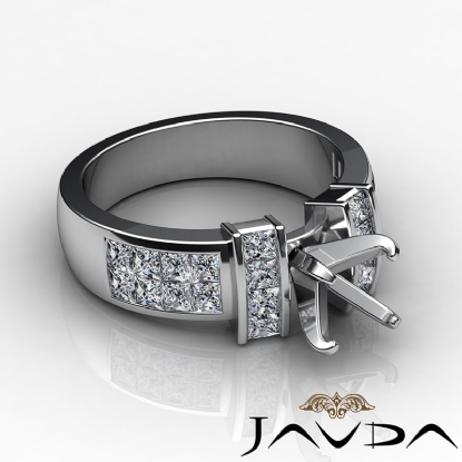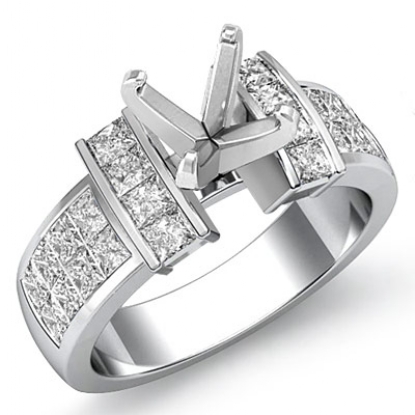Forever timeless, this luxurious 1.03ct. polished finish ring is made in 14K white gold. It features a round semi mount, with princess cut diamonds in invisible setting dazzling along the shank.