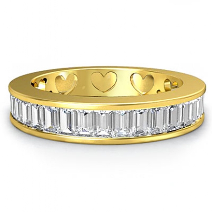 Baguette Cut Diamond Half Wedding Band Women's Wedding Ring with beautiful Heart's on the inside made in 18k Gold Yellow. (1Ct. tw.)
