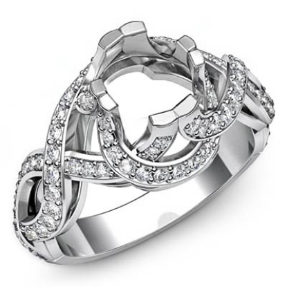 Diamond Antique Engagement Halo Setting Ring Round Semi Mount 14K White Gold 1Ct