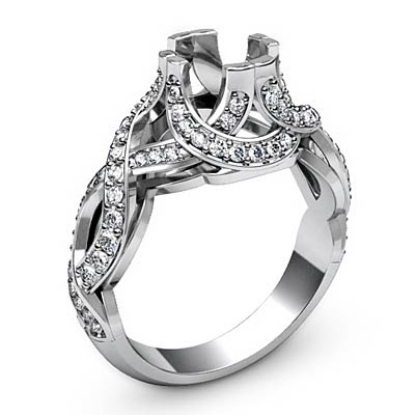 This strikingly sophisticated 14K white gold engagement ring showcases your round semi mount and the magical shank in 1 carat of pave set round diamonds.