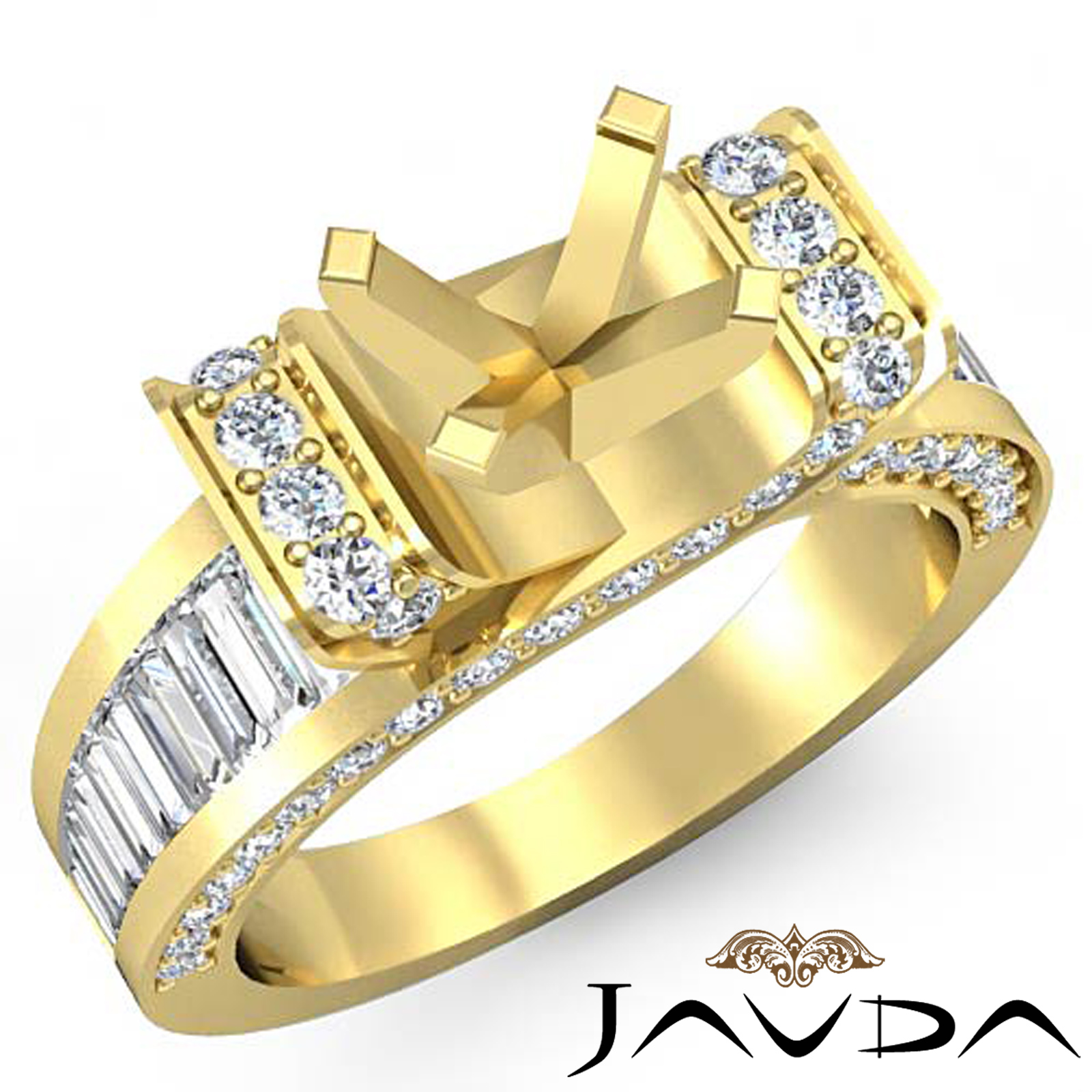Round Baguette Diamond Engagement Antique Ring Setting 14k Gold Semi Mount (2Ct. tw.)