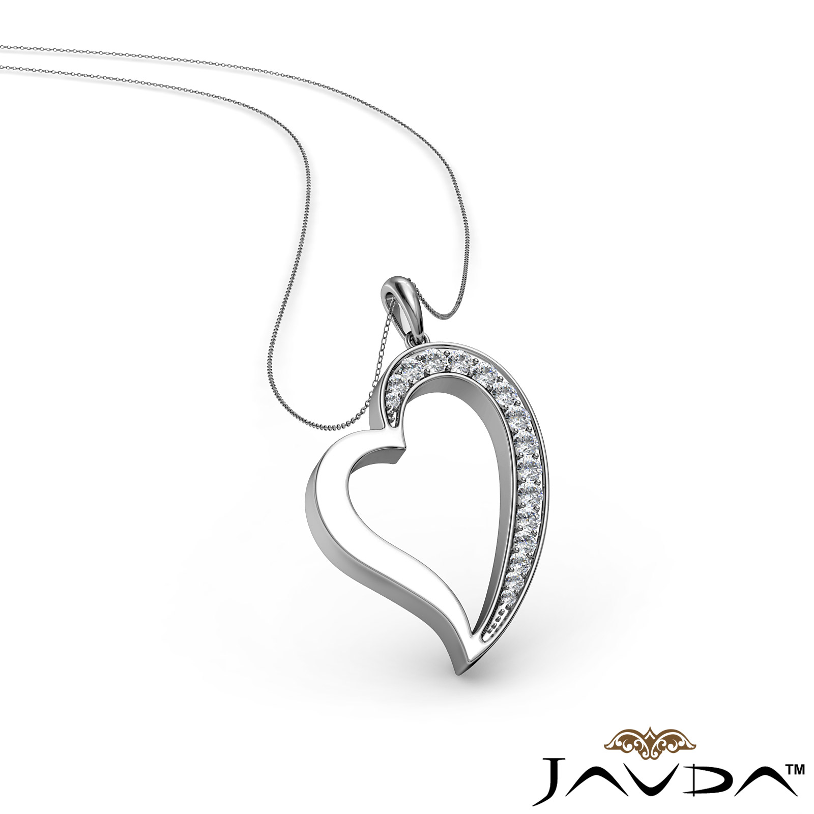 Side 0.15 ctw. Round Diamond Round Pave E - F color Diamond Heart Pendant 18k Gold White with Silver Chain 18" necklace Pendant Hoop is 14k Gold and the Chain is Silver 18" . Gold Chain available at additional cost (0.15Ct. tw.)