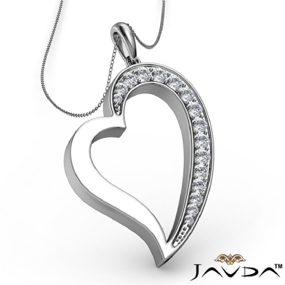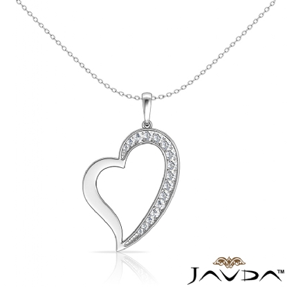 0.15 CT Round Pave E - F color Diamond Heart Pendant 18k White Gold with Silver Chain 18"